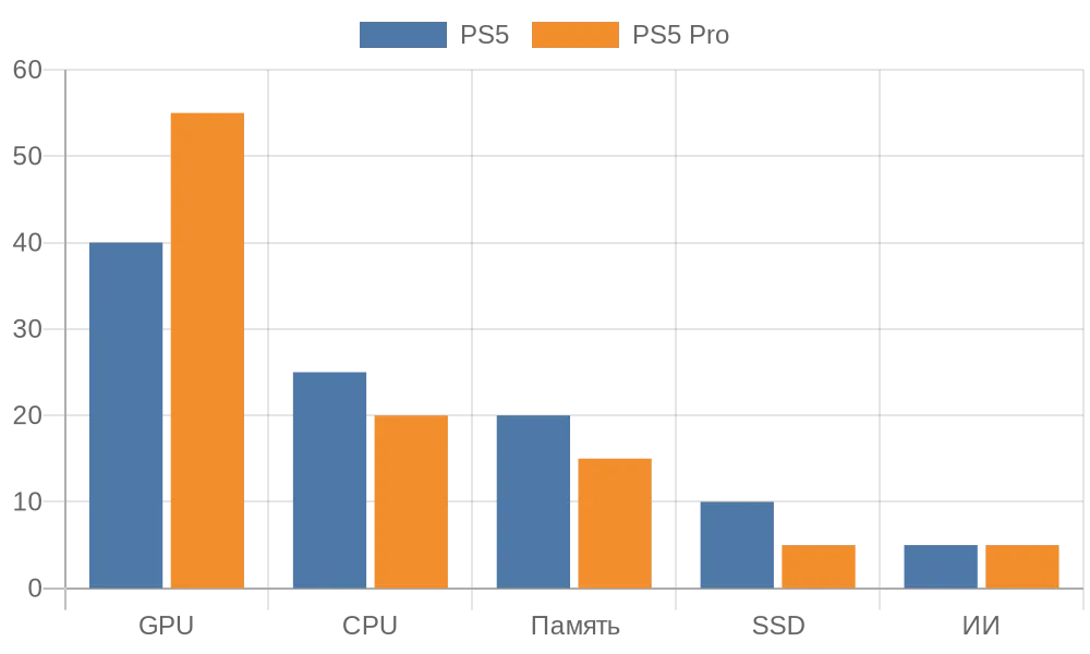 | Компонент | PS5 | PS5 Pro | Прирост производительности |
